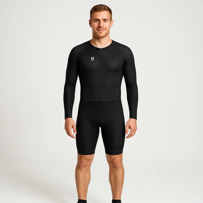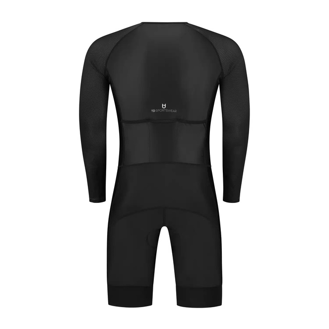 Questo trisuit a maniche lunghe è progettato per atleti appassionati che puntano a prestazioni elevate. Combina tessuti traspiranti con caratteristiche aerodinamiche per il massimo comfort e velocità. Inoltre, il trisuit e il fondello si asciugano rapidamente. Che tu sia pronto ad affrontare le sfide dei triathlon a lunga distanza in diverse condizioni, questo trisuit professionale è pronto per te. Con imbottiture avanzate e materiali di alta qualità, garantiamo prestazioni ottimali con questo capo. Scegli il trisuit definitivo per la tua prossima gara.