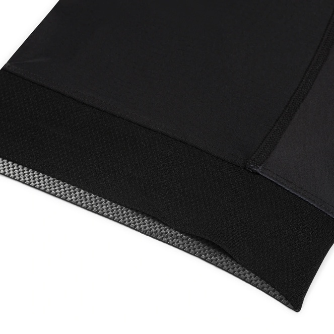 Per l’interno delle cosce è stato scelto consapevolmente un tessuto nero non stampabile. Ciò garantisce un’elevata resistenza all’usura e prolunga la durata della tuta. Il materiale, composto da 80% poliammide e 20% elastan, mantiene la sua qualità anche dopo migliaia di chilometri. I tessuti stampabili possono usurarsi o sfilacciarsi a causa dello sfregamento prolungato, ad esempio con la sella. Per evitare questo, utilizziamo un materiale durevole di qualità superiore, prodotto in Italia. Questa scelta garantisce una maggiore durata e prestazioni costanti.