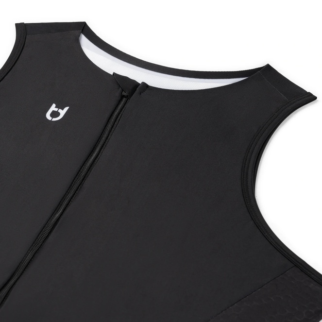 Questa tuta da triathlon è realizzata in un tessuto avanzato che garantisce un’elevata traspirabilità, mantenendoti fresco e asciutto anche durante i triathloni più intensi. Non dovrai preoccuparti di un’eccessiva perdita di umidità. La composizione leggera di materiali di alta qualità assicura una vestibilità perfetta e ti dà la sensazione di non indossare quasi nulla. È ideale per gare con temperature da 10 °C a oltre 35 °C. Questa tuta è utilizzata da atleti d’élite nei triathloni di tutto il mondo.