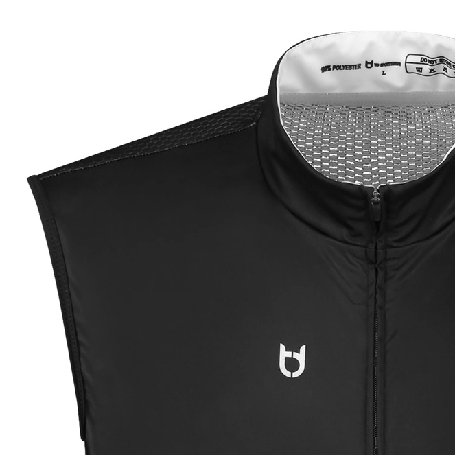 Questo gilet antivento presenta un tessuto mesh unico sui lati, composto al 92% da poliestere e all’8% da elastan. Il materiale è elastico e aderisce bene al corpo, aumentando il comfort, mentre la struttura a rete garantisce una ventilazione eccellente e una gestione dell’umidità durante l’uso intenso tra i 10 e i 20 gradi Celsius.