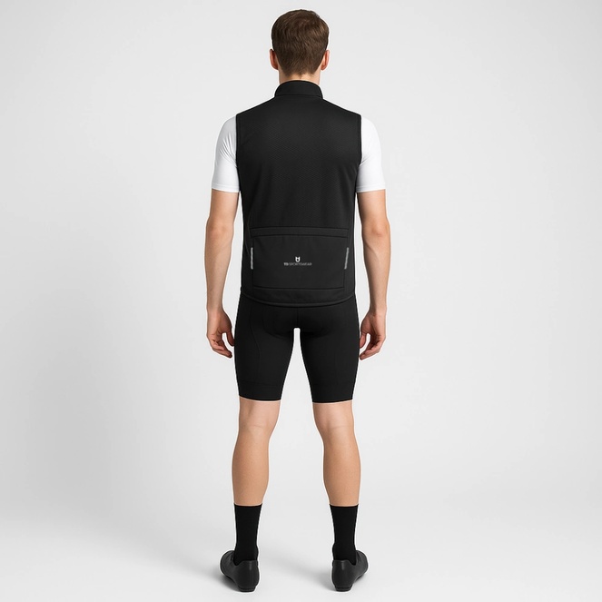 Questo elegante gilet antivento è un modello di alta gamma che offre una protezione eccellente contro il vento. La parte anteriore del gilet è completamente impermeabile al vento, garantendo il massimo comfort durante la pedalata. Il retro del gilet è realizzato in materiale mesh, che permette una buona ventilazione e gestione del calore, e il gilet si adatta piacevolmente al corpo. Grazie alla presenza di elastan nel mesh, il gilet si adatta perfettamente al corpo. Le bande elastiche sulle spalle e sull’orlo impediscono l’ingresso del vento. Questo rende il gilet ideale per le giornate più fresche, quando una semplice maglia non è sufficiente o quando c’è vento forte.