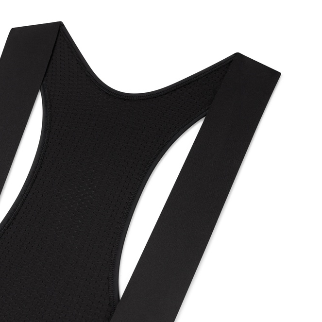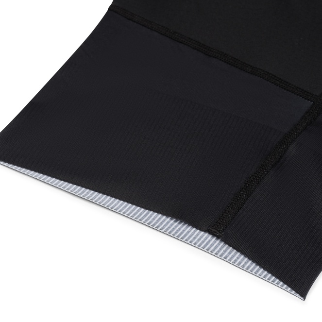 Il pezzo di tessuto all’interno delle cosce è nero e non stampabile perché deve essere altamente resistente per garantire una maggiore durata dei pantaloni con bretelle. È composto da 80% poliammide e 20% elastan, assicurando che i pantaloni rimangano in ottime condizioni anche dopo migliaia di chilometri. Lo svantaggio del tessuto stampabile è che tende a sfibrarsi rapidamente quando sfrega contro la sella e le cosce. Ecco perché, come altri marchi, utilizziamo un materiale resistente e non stampabile della massima qualità italiana per aumentare la durata.