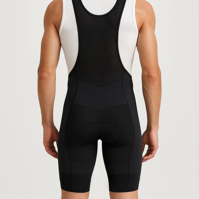 Le larghe bretelle di questi pantaloncini da ciclismo professionali sono realizzate in un tessuto fine ed elastico, composto per l’80% da poliestere e per il 20% da elastan. Ciò garantisce un effetto traspirante e una rapida evacuazione del sudore, evitando che le bretelle diventino umide o sfreganti. Grazie alle bretelle extra larghe e robuste, non le sentirai nemmeno mentre pedali. Il pannello posteriore è realizzato con una miscela di poliestere ed elastan da 140 grammi, che consente di stamparlo con i tuoi loghi e colori senza che diventi trasparente. In questo modo non solo renderai felici i tuoi sponsor, ma vivrai anche il massimo comfort.
