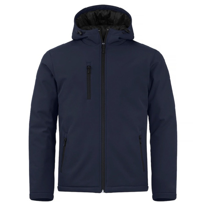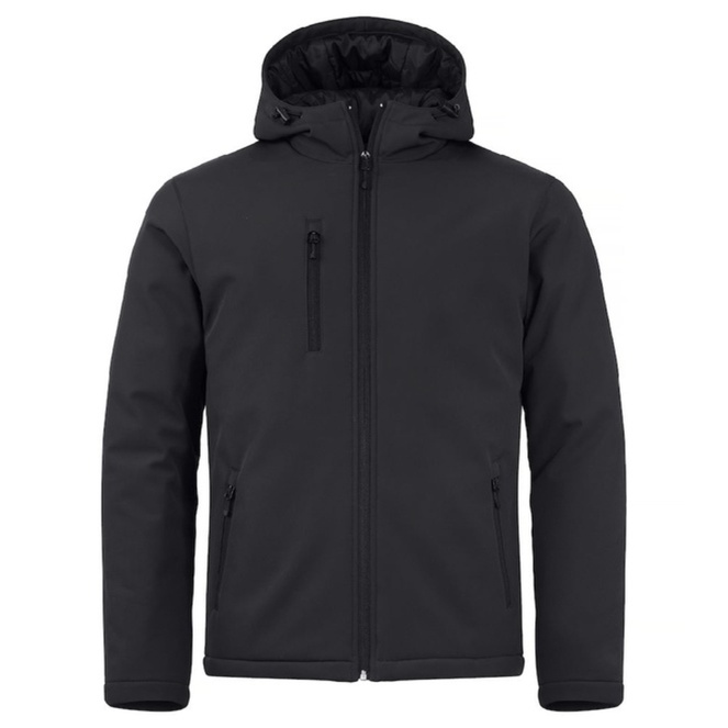 Dit softshell jack heeft een moderne snit, is gewatteerd en heeft een capuchon. Het jack heeft drie buitenzakken met omgekeerde SBS-ritsen, een zwarte voering en is te bedrukken met jouw logo’s en te verkrijgen in meerdere kleuren.